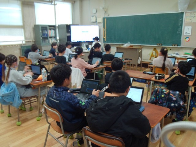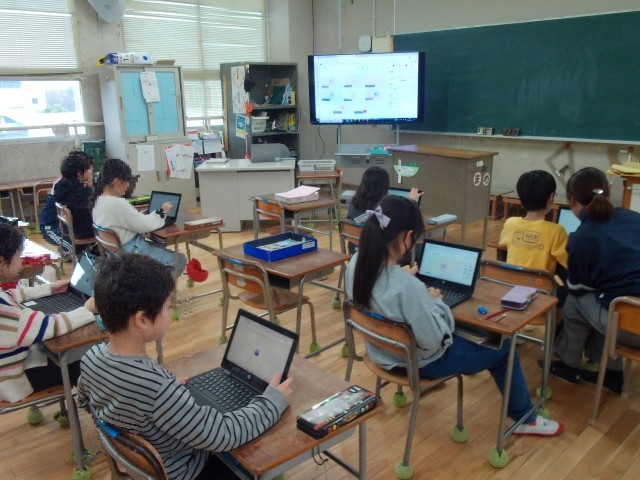 今日の5時間目はオンライン授業です。開始時刻は14時です。教室で練習しているようすです。