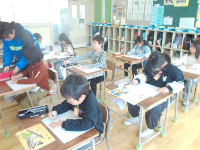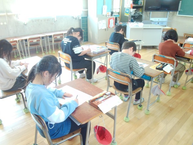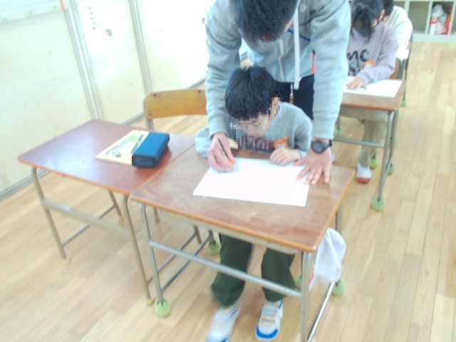 集中して、ていねいに書いています。しせいもたいへんすばらしいです。