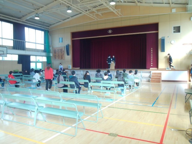 卒業式に向けて、講堂での練習です。1回目の講堂での練習でしたが、みんな集中して、真剣に取り組んでいます。
