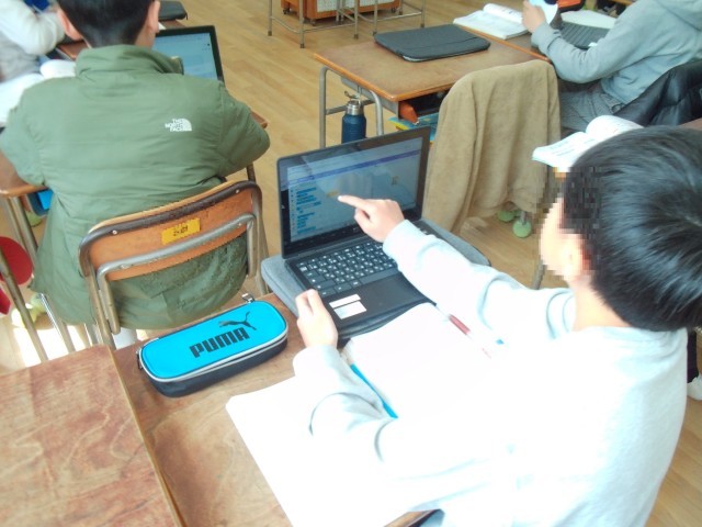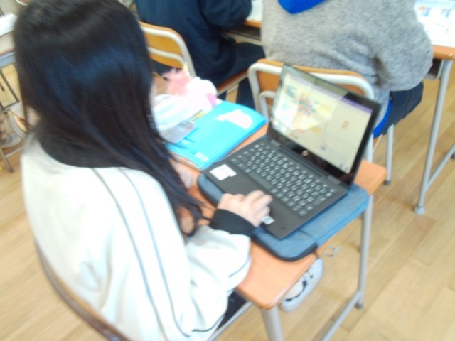 今日の学習はプログラミング学習です。まずは、教科書の手順にそって、計算機を使って計算しながら進め、落暉カラーを決めます。次に、プログラミング学習ソフトのスクラッチでラッキーカラーをきめるプログラムを考えていきます。