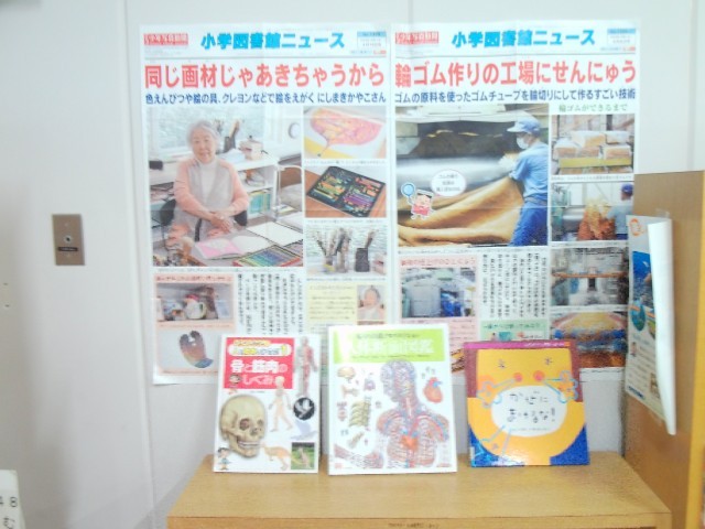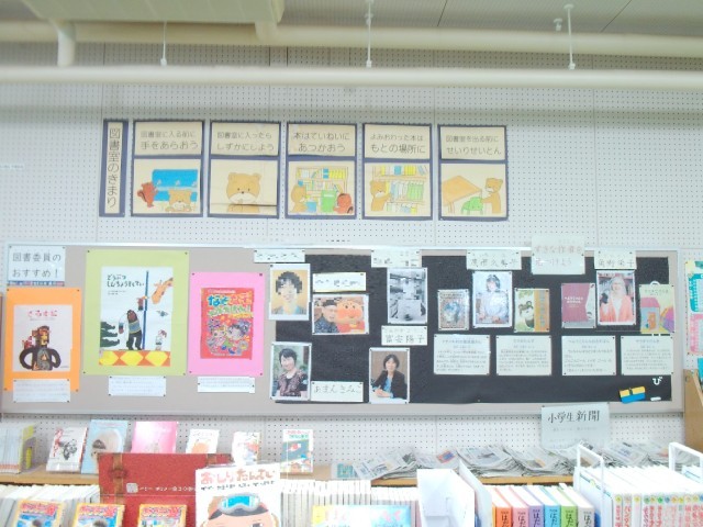 今日は図書室で、5年生が伝記の感想文を書いています。南港光小学校の図書室は、子どもたちが本を好きになるための、様々な工夫があります。また、図書室近くの掲示板には、6年生のために、中学生に向けてのおすすめの本の紹介もしています。