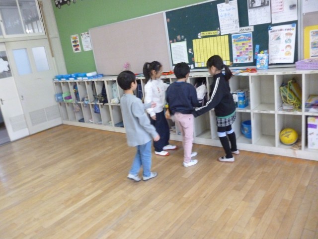 今日は1年生にてんにゅう生がきました。みんなでじこしょうかいしました。ロッカーのばしょなど、ていねいにおしえています。