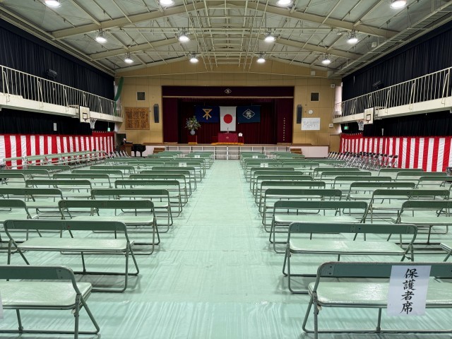 会場の設営が、無事終了しました。明日、子どもたちが元気に登校してくれるのを待っています。