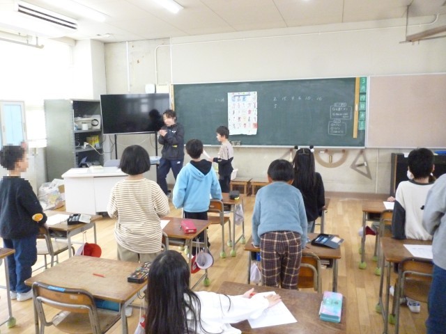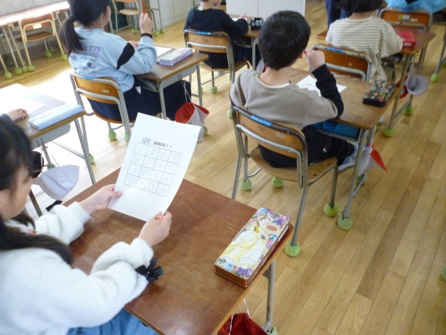 2年生はビンゴ大会です。数字のビンゴでしたが、すごくもり上がっていました。