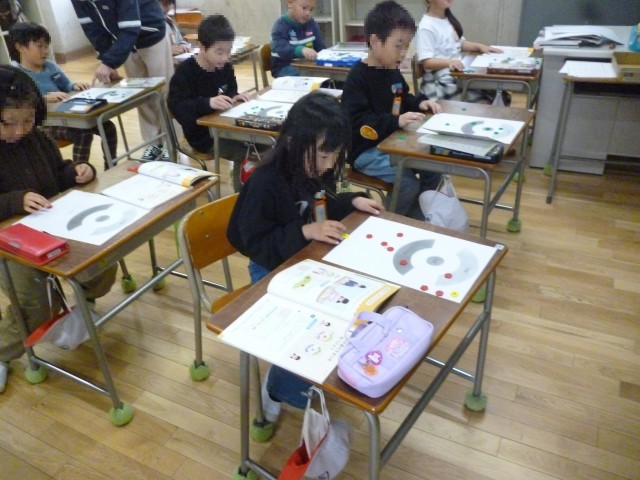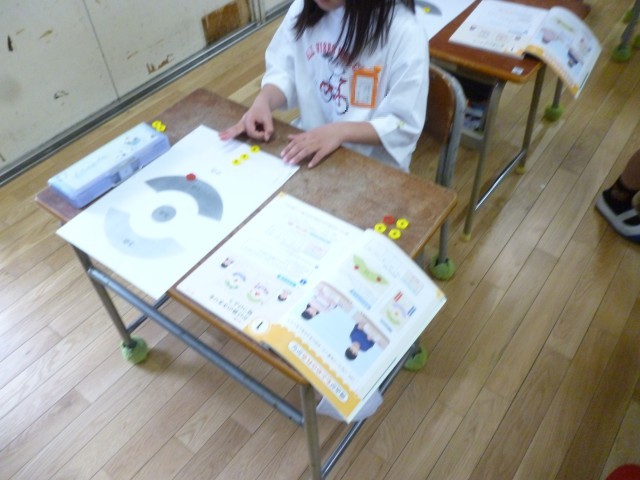 おはじきをはじくゲームです。10回はじいて、そうとく点できそいます。0点がいくつ、1点がいくつ、5点がいくつかを表に整理していきます。