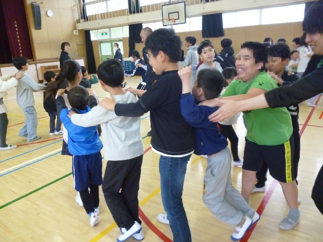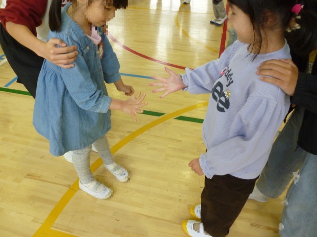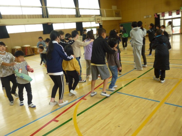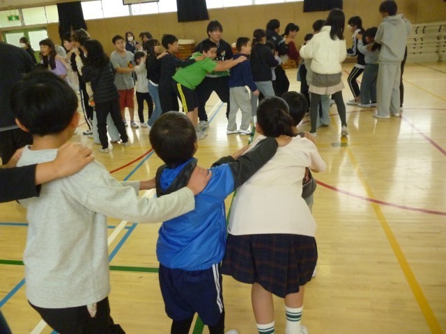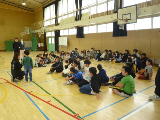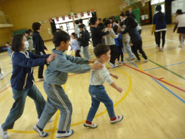 体育館で、じゃんけん列車をしました。6年生がやさしく教えてくれました。みんなが笑顔の大切な時間を過ごすことができました。