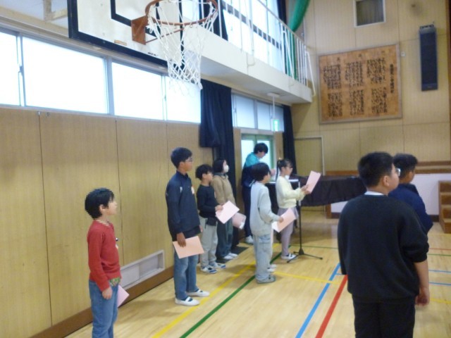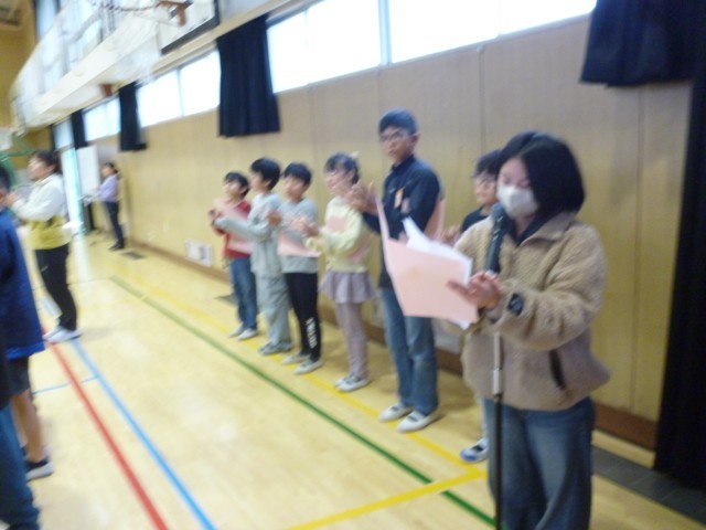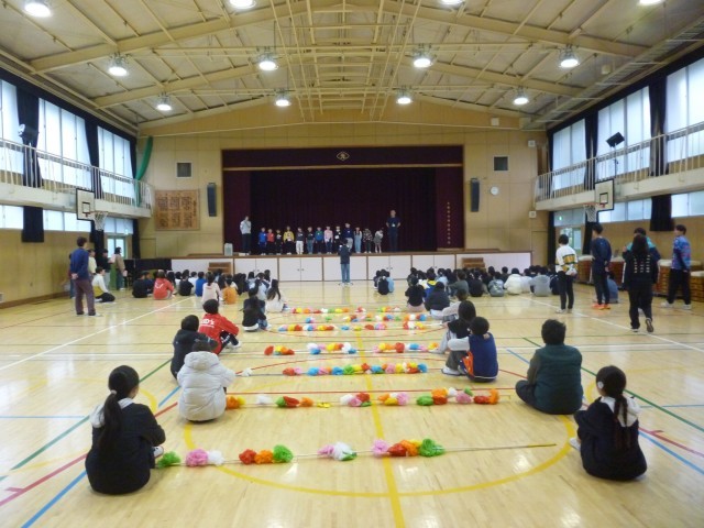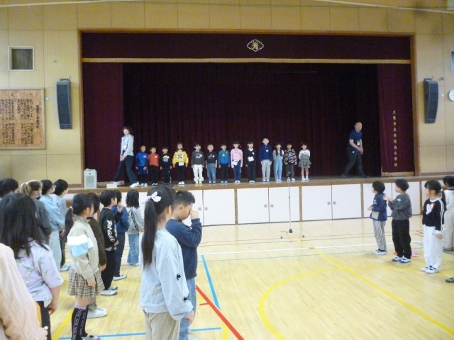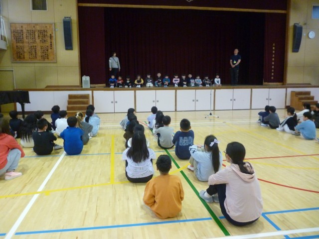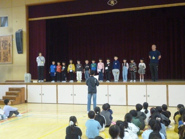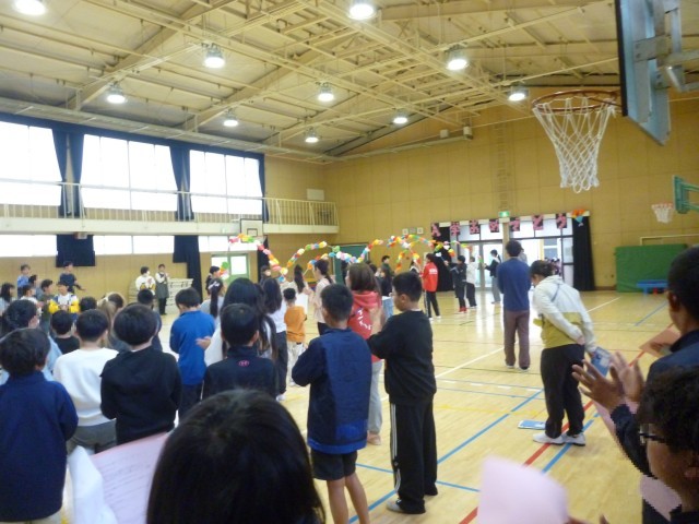 講堂で児童会による対面式をしました。6年生の花のアーチで入場してきた1年生は、少し緊張した面持ちですが、しっかりとあいさつできました。式では、代表委員児童が南港光小学校のクイズなど、いろいろと1年生のために考えてくれました。