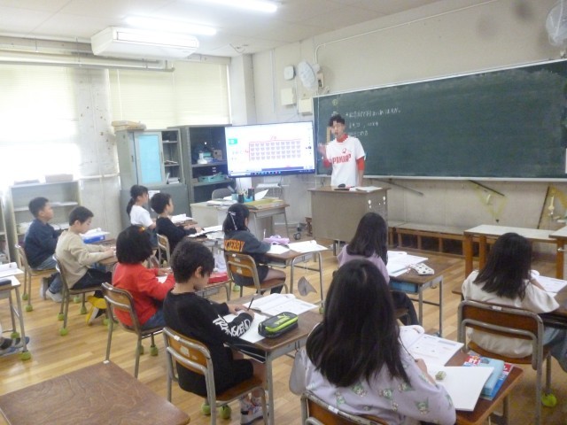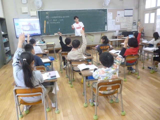 かけ算の学習です。4×10の計算のしかたを考えています。