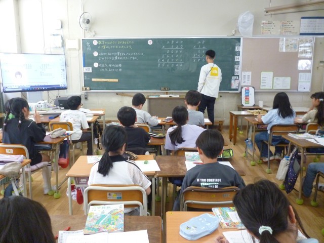 数字のおわりが「0」のときのかけ算を、くふうしながら計算しています。
