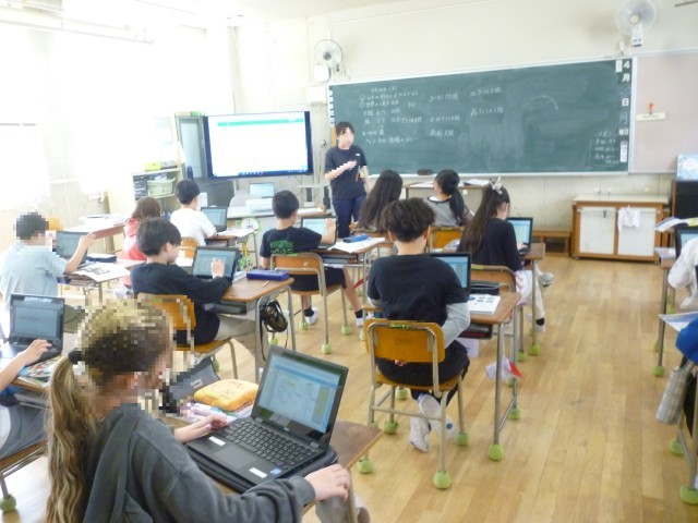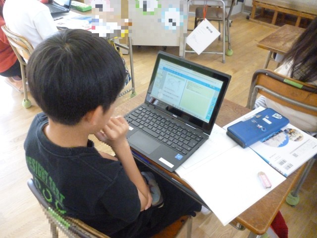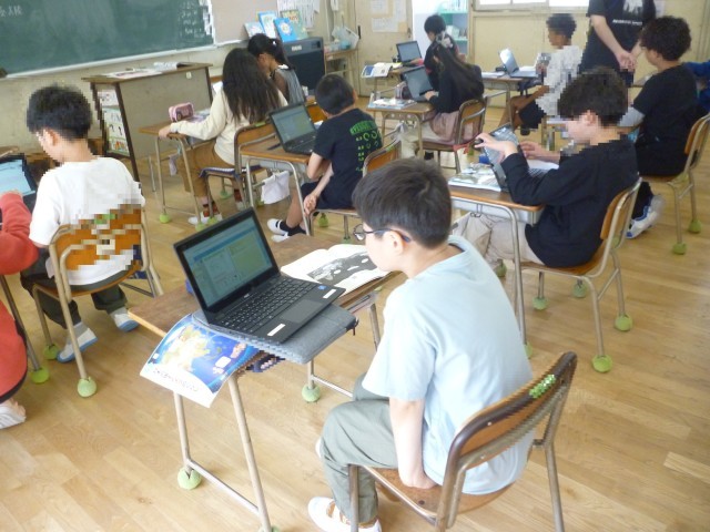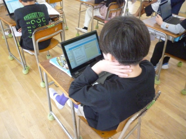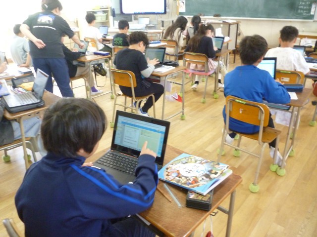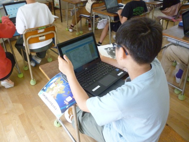 世界の6大陸と3大洋について調べています。学習したことをまとめものを、タブレットの発表ノートで提出しています。