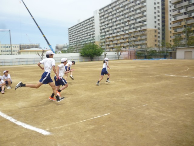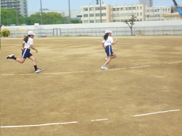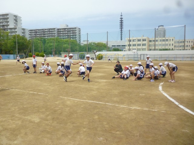 4チームにわかれてリレーです。6年生は、昨年度からよく練習していたので、スムースにバトンがわたっています。