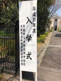 午前9時40分!日本初!公設民営の国際バカロレア校認定の小中一貫校「大阪市立水都国際中学校・高等学校」の入学式が行われました。全市から生徒が集まり、相愛大学のホールは新しい門出をお祝いするムード一色でした!新入生の中には桜出身の子どもの姿もあり、二人とも少し緊張気味でしたが、素敵な笑顔も見せてくれました。英語での式辞や喜びの言葉があり、国際色いっぱいの式典でした。