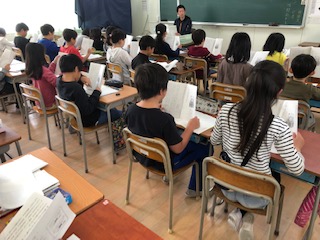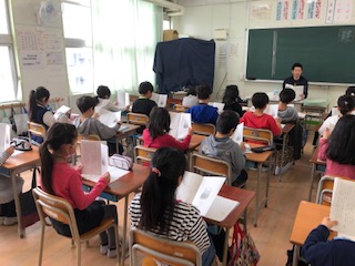 物語の登場人物とは?これまでの学習を思い起こしながら、登場人物の意味を確認する子どもたち。「人物って言っても、人だけとは限りません!ものでも登場人物になります!」鉛筆どうしの会話を例に納得していく子どもたち。次に音読に入ります。ただ読むのでなく、抑揚をつけること!会話文への心の込め方!など、ひとつひとつ丁寧に学ぶ子どもたちです!笑顔あふれる学びの空間でした!