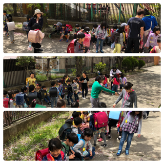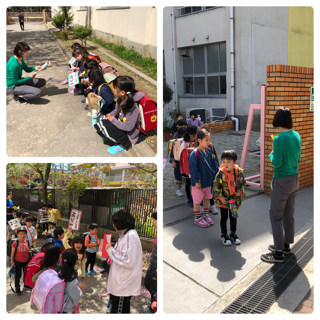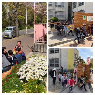 掃除活動を桜リーダーに任せた1年生の子どもたちは、廊下前にある広場に集合して、グループごとに固まって帰ります!学校が1週間が過ぎ、少しずつ生活にも慣れてきた子どもたちです!笑顔いっぱいに「さようなら!」と手を振る子どもたちでした!