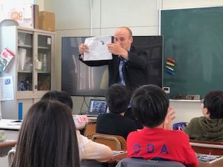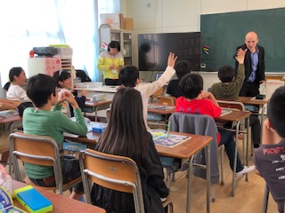 今年度のALTであるジョンさんはアメリカのミシガン州出身です!とっても気さくな男性で、あっという間に子どもたちとも仲良くなり、学びをつくっています。それぞれの出身地を話題に、英語を交えながら、楽しい英語の授業をしました。子どもたちも抵抗なく、自分らしさを存分に出していました!とっても明るい教室風景でした!
