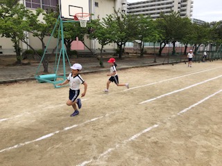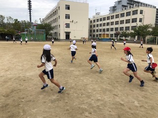 どんより曇った空の下、子どもたちは運動場を走り回っています!準備運動も兼ねての鬼ごっこです!どの子も楽しそうに逃げ回り、追いかけ回っていました!やっぱり遊びから学ぶ子どもの瞳は輝いていますね!教室での学びにも遊びの要素が必要ですね。