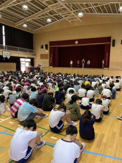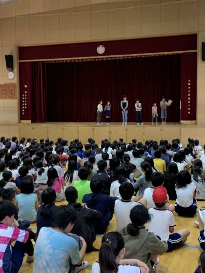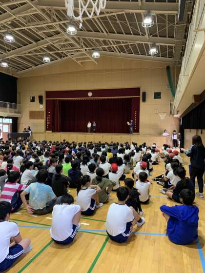 昨晩の雨上がりで少し暑さも和らいだ今日!今年度初めての児童集会が行われました。今日のゲームは「○秒を心で数えて当てよう!」です。子どもたちは「よーいスタート!」の合図で目をつぶる子、うつむいて集中する子、指おり数える子、手でカウントする子などなど、思い思いの手段で回答にチャレンジしました!大正解の子どもたちは舞台に上がって感想を言います!「うれしかった!」というコメントの多い中、「まさか当たるとは思っていませんでした!」と正直に自分から自分らしく自分の言葉で伝える子どももいました!