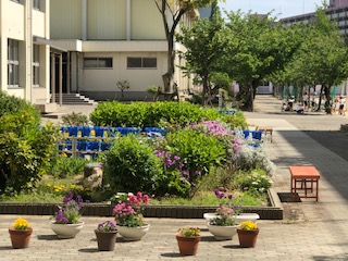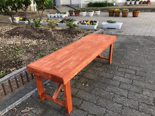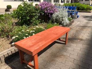 中庭には新しい長椅子が2脚新登場しました!できたてほやほやの椅子からは木のぬくもりを感じることのできるステキな香りがしています。またここで子どもたちや大人たちがゆったりとくつろぎ、花たちを楽しむことができます!管理作業員のみなさん!すてきな空間をありがとうございます!