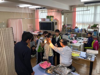 また、今日は保健室や学校のことを学ぶために、大学生のボランティアの2人がサポートに入ってくれています。二人とも学ぶ姿勢が素晴らしく、自分からどんどん動いていました。あと2日間の学びをよろしくお願いします。