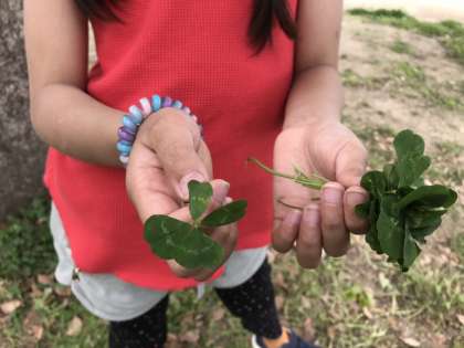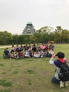 緑広がる芝生の上で、思いっきり体を動かしました。そこでなんと四つ葉を10個も発見!!これは驚き!!!やっぱり大自然ですよね!また大阪城をバックにハイポーズ!笑顔あふれる子どもたちです!