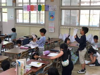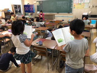 説明文の音読です!形式段落で自分の役割を決めて、音読し合います。先生の発言なしに進む「たけのこ読み!」まずは自分たちで考えながら進めました!終わるやいなや、子どもたちが「やったー!」と大歓声が上がりました!なぜか?それは先生が一度も介入しなかったからでした。自分たちでやり切れた感動の嵐でした!その後は、子どもの読みから気になったところを、丁寧に確認し合いました。