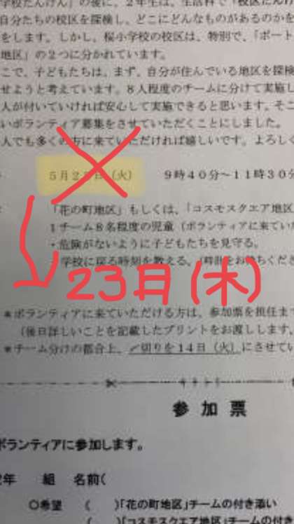 28日(火)と、なっていましたが、正しくは23日(木)です。再度ご確認ください。重ね重ねご迷惑をおかけしたことをお詫び申しあげます。引き続きのご理解とご協力をよろしくお願いします。