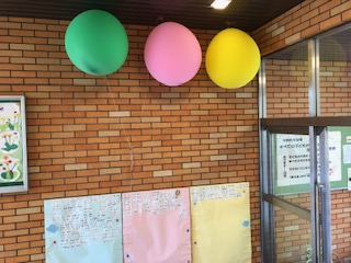 先月末から玄関で浮遊する3つの風船!今学期はこの風船をふくらませるぞ!と子どもや大人がそれぞれ決めた風船の下に、自分の名前を書き、決意を表明します!「自分のことを人に言う」と書いて、「自信」です。したいこと!叶えたいこと!をどんどん周りの人に言いましょう!願えば叶う!これ本当です!