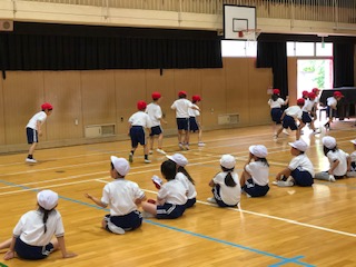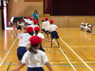 体育館では子どもたちが反復横跳びにチャレンジしていました。リズムよく跳ぶことや瞬発力が必要なこの種目はなかなか子どもたちにとっては難しそうでした。それでも一生懸命に右に左に動く子どもたち!個人差はあって当然!大切なことは諦めずに最後までやり通すことです。がんばる子どもたちの姿はとっても素敵でした!