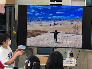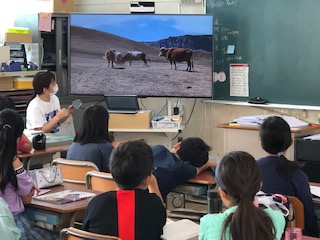 当たり!そうモンゴルです。衣食住について伝えると、日本との違いを感じざるを得ません。空の青さが澄み切って、大自然そのものです!遊牧民族である人々の特徴ある生活習慣に驚きと興味で、子どもたちは画面を見入っていました!違いを知ることは大事ですね!世界は広い!
