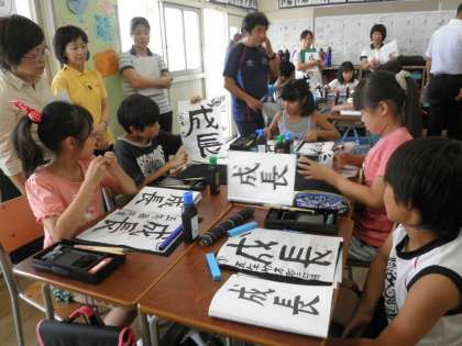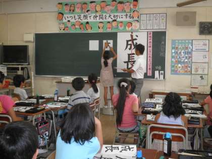 書写の学習は、子どもたちの学習の基礎・基本を育てるうえで大変大切な学習です。9月10日に5年生で、書写の研究授業をしました。子どもたちは、自分たちの書いた字を確かめながら、さらに良い字にしていこうと友だちとも話し合って熱心に取り組んでいました。