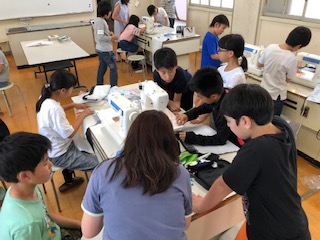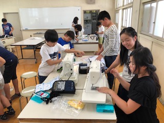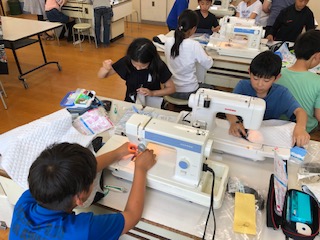 子どもたちはミシンと格闘しています!針の通し方、下糸の出し方、運針のコツなどなど、友だちの協力しながら学んでいます!ところが機械は思うように動かないことがあります!担当の大人だけではうまくまわりません!そこでお願いです!