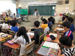 今日の国語はシャッフル授業!5年と交換授業です!いつもとは違う先生と学びます!ここでは詩の音読表現にチャレンジする子どもたち!二つの詩の気に入った方を1人読みから始めます!同じカマキリがタイトルにある詩!しかし、使われる言葉や表現方法にそれぞれ特徴があります!言葉を強めたり、弱めたり、感情を込めたり、抑揚をつけたり、友だちや先生の読み方から学び合います。なんだかウキウキ楽しそうな子どもたちでした。