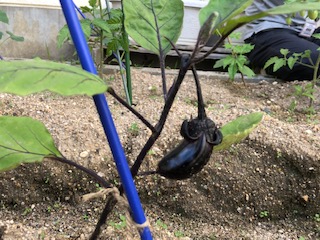 中庭の一角では以前お伝えしたように、2年生の子どもたちと地域の人たちで野菜を育てています。今日も地域の方がぶらっと学校に立ち寄られて、野菜たちの手入れをされていました。
