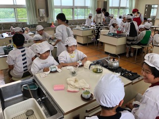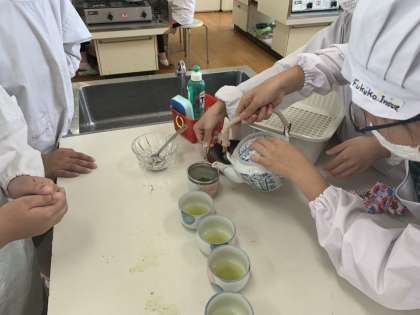 子どもたちは初の調理実習にチャレンジです!今日はお茶の入れ方!ふだんはあまり気にせずお茶を飲んでいる子どもたち(大人もですね)ですが、今日は正しいお茶の入れ方を学びました。葉の量や湯の温度など、細かいことへ気を配り、そうする意味を考え、実習しました。みんないい顔してました!