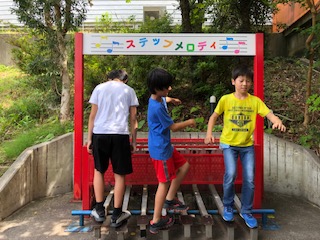 まずは音の世界へ!ステップメロディやもしもしパイプ!メロディ並木と、音と遊ぶ空間が目白押し!子どもたちは夢中です!