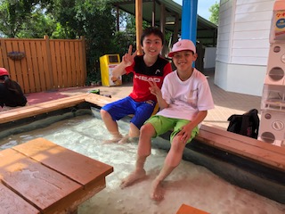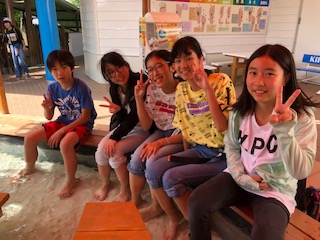 つぎは足湯と手湯?あー気持ちいい!と混乱した頭をリフレッシュした子どもたちです!