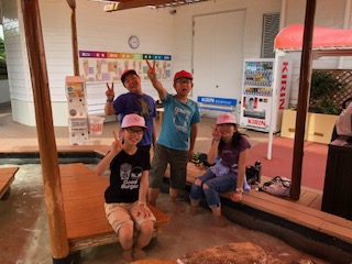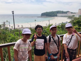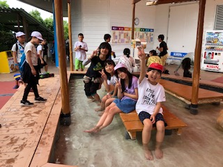 足湯その2!子どもたちは意外と足湯が大好き!来る子ども子どもが足をつけていきます!白良浜もすてき!
