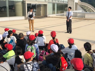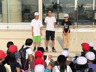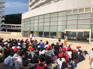 海を目の前にしたテラスで開舎式です。代表の子どもたちがあいさつをして、ホテルの人からお話を聞きました!興奮して浮かれる子どもたちですが、ホテルの方や他の宿泊客のみなさんのこともしっかりと考えて動くように子どもたちと確認し合いました!