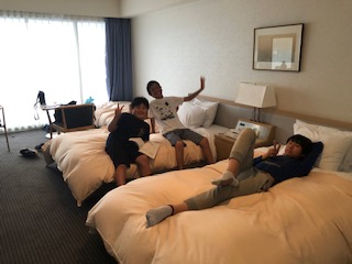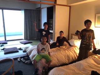 お風呂上がりのほんのひと時、子どもたちは部屋でくつろいでいます。もうすでに荷物が散乱している部屋もありました!自分たちの部屋を自分たちで過ごしやすくするのも学びです。みんな楽しそうです!