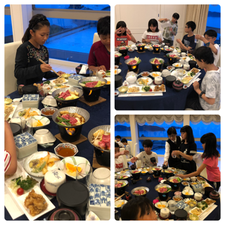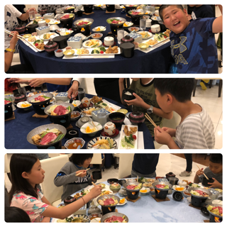 ディナーの子どもたちです!食べてる時の子どもの笑顔は最高ですね!この後、ますます元気になる予感です!夜は早く寝てくれるかな?