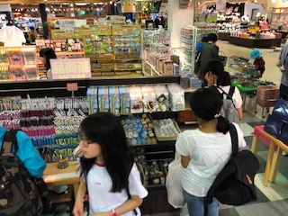 子どもたちはラストスパートで買い物してます!あと5分で集合して、学校に向けて出発します!