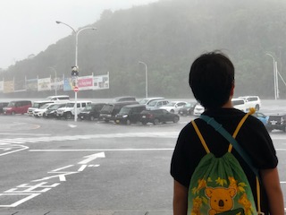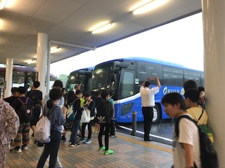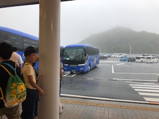 すごい雨です!バスがギリギリまで乗りつけました。運転手さんはとても親切な方々です。あとは安全に大阪へ戻ります!雷さんがお疲れ様、気いつけて帰りや!とゴロゴロしてくれています!
