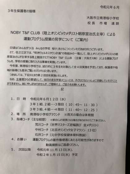 ただし、残念ですが、前回のように子どもの中に入っての走る運動に制約がかかり、いっしょに走っていただくことができません。本当に申し訳ありません。しかし、いっしょに体操をしたり、子どもたちの横で走っていただいたりすることは大丈夫です。