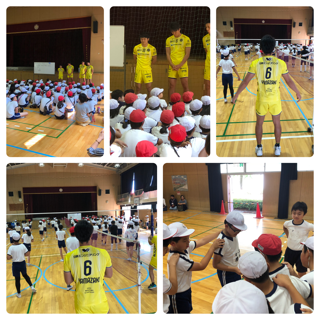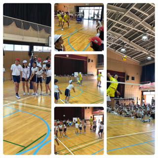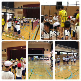 本物との出会いの瞬間!バレボールリーグの堺ブレザーズの選手たちが桜小の体育館に参上!やっぱり背が高い!準備運動のあとは、ボールを使ってゲーム形式で心も体もほぐします。トスやレシーブの学習が終わると、花形であるアタックです。最初は持ったままのボールを打ち込みます。慣れてくると手あげトスしたボールをコートに打ち込みます。子どもたちはだんたんと慣れてきて、強いボールを打ち込む子どもも出てきました。基本から応用まで幅広く学ぶことができました。堺ブレザーズのみなさん!ありがとうございました!