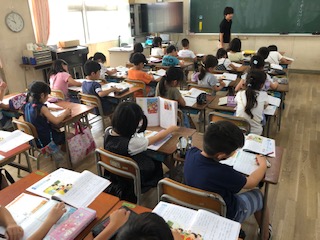 「本がかりさん がんばっているね」から、かかり活動について自分たちの振り返りをしました。終わりの会で友だちの発表を聞いてどう思ったのか?をペアで伝え合います。そしてグループへ伝える輪を広げます。そこで、課題が出てきました。「うれしかった!」「がんばれた!」だけのやり取りで終わる伝え合いになり、話がふくらみません。そこでアドバイス!「なんでそう思ったん?」や「どこみてそう思ったん?」など、その根拠を問いかけ直す手段をみんなで確認し合いました。すると、子どもたちの声が教室にひびきわたるようになりました。子どもたちはほんの一言のアドバイスで変わりました。これが子どもの力であり、大人の関わり方で大きく成果が違うのです。子どもの声にならない声を聞くために、私たち大人がどれだけ慎重に言葉を選び、言葉の力を信じられるのか!これが大事ですね!
