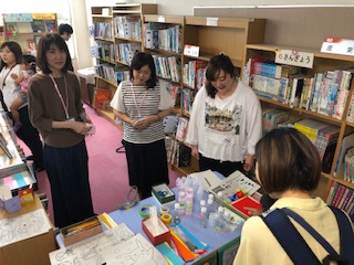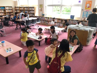桜PTAによる図書室での就学児遊びコーナーには、たくさんの子どもたちや大人のらみなさんが集結していました。図書室の雰囲気はとてもいい感じで、子どもたちも楽しんでいました。また、お父さんらしき男性の方が椅子に腰掛けて読書していました。お父さん方にとっても学校が安心できる場所になればいいなあと思いました。