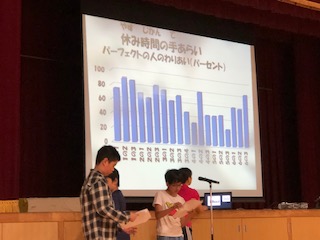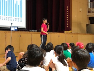 次に保健委員会からの報告です!手洗いについての結果報告では、「えー!」「ほんまー!」と驚きの声があがりました。改めて手洗いの大切さを実感した子どもたちでした。「自分の健康は自分が守る!」ここでも大切なことは同じです!