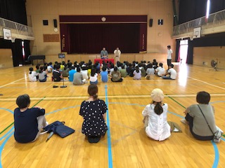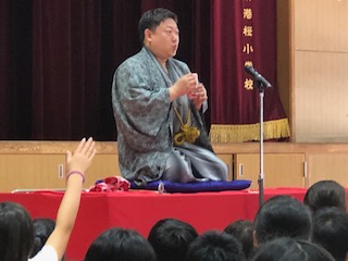 まずは、落語の発祥はお坊さんの説法であったことや扇子や手ぬぐいだけで様々なシチュエーションを表現することなど、面白おかしく伝えてもらいました。