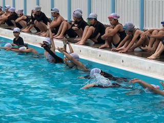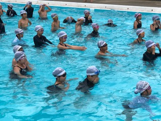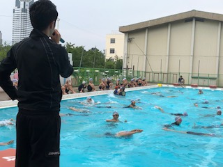 水中であぶくがでてるかな?つまり、息を吐ききっているか?長く遠くに泳ぐためには、息継ぎの質が大事!伏し浮きはサンマになって!腕や脚をしっかりと伸ばして!蹴伸びからバタ足へ!子どもたちはどんどん進化していきます!そして、次はビート板を使います!浮く感覚をより体に覚えこませます!