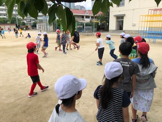 子どもたちが一糸乱れぬ動きで、長縄にチャレンジしています。息を合わせて、気持ちを揃えて何度も挑んでいました。誰かがひっかかっても!どんまい!次々!と前向きに声をかけ合う姿がとても素敵でした!何か一つのことにクラスが一丸になって取り組むことって大切なことですね。